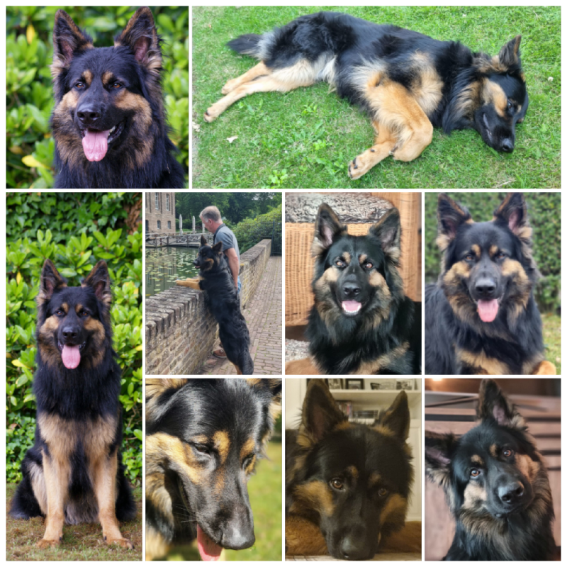 Novan is een vriendelijke reu die graag met andere honden speelt. Regelmatig horen we van andere hondeneigenaren dat hun hond bang is van herders en dat ze verbaasd zijn hoe rustig hun hond blijft bij Novan. Novan accepteert de grenzen van de andere hond.
